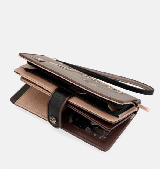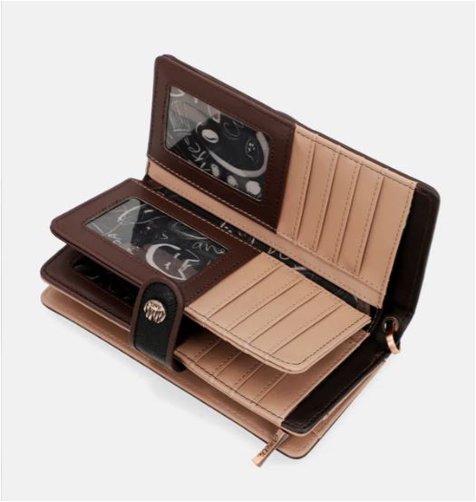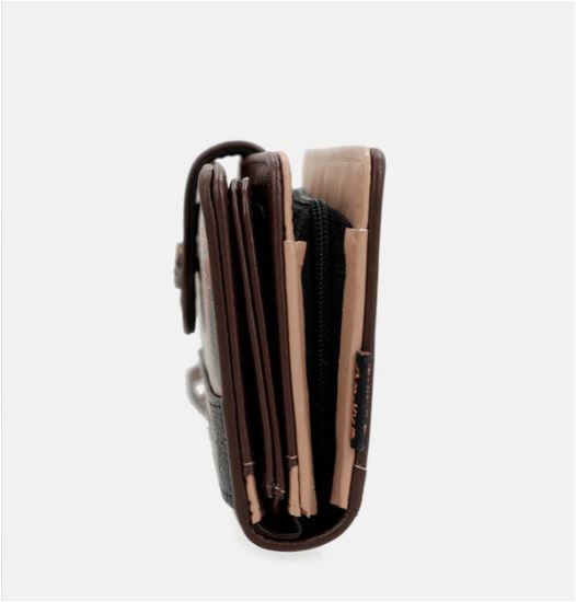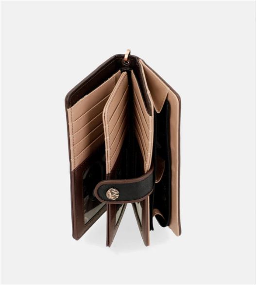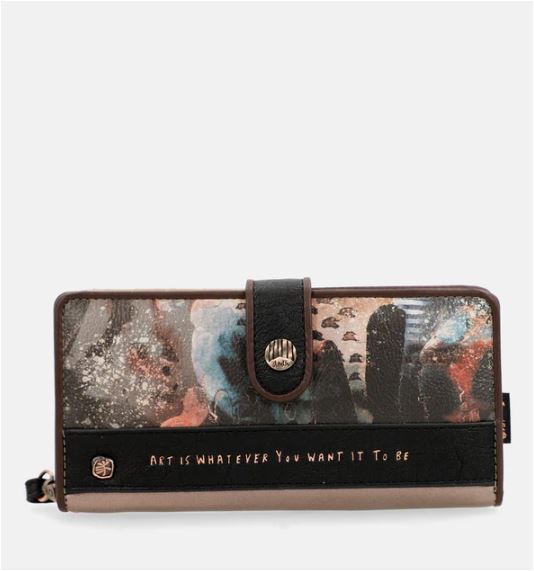 Billetero grande Shoen de Anekke. Este billetero de tamaño grande cuenta con dos compartimentos principales: la parte trasera, donde encontrarás un amplio billetero y doble tarjetero. En la parte superior cuenta con cremallera y en el interior podrás guardar monedas. Todo el interior va forrado.