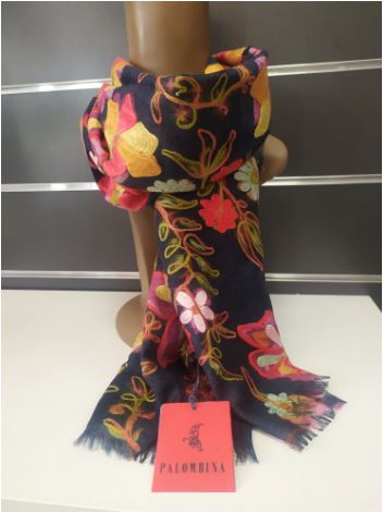 Fular KATSU de Palombina 100% lana. Todos los fulares elaborados por Palombina se fabrican a mano en India o en Francia. En Palombina están especializados en lana merino australiana y fibras naturales como algodón, lana, lino y seda. Se trata de productos de alta calidad, con diseños muy coloridos y llamativos que resultan ideales para cualquier ocasión.