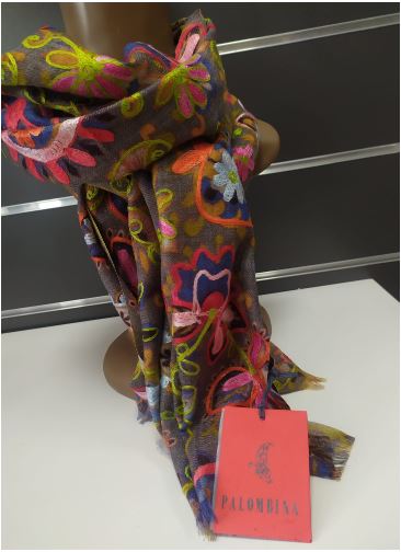 Fular EDDA de Palombina 100% lana. Todos los fulares elaborados por Palombina se fabrican a mano en India o en Francia. En Palombina están especializados en lana merino australiana y fibras naturales como algodón, lana, lino y seda. Se trata de productos de alta calidad, con diseños muy coloridos y llamativos que resultan ideales para cualquier ocasión.
