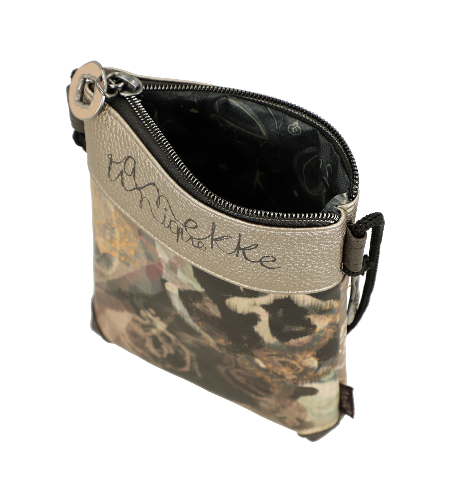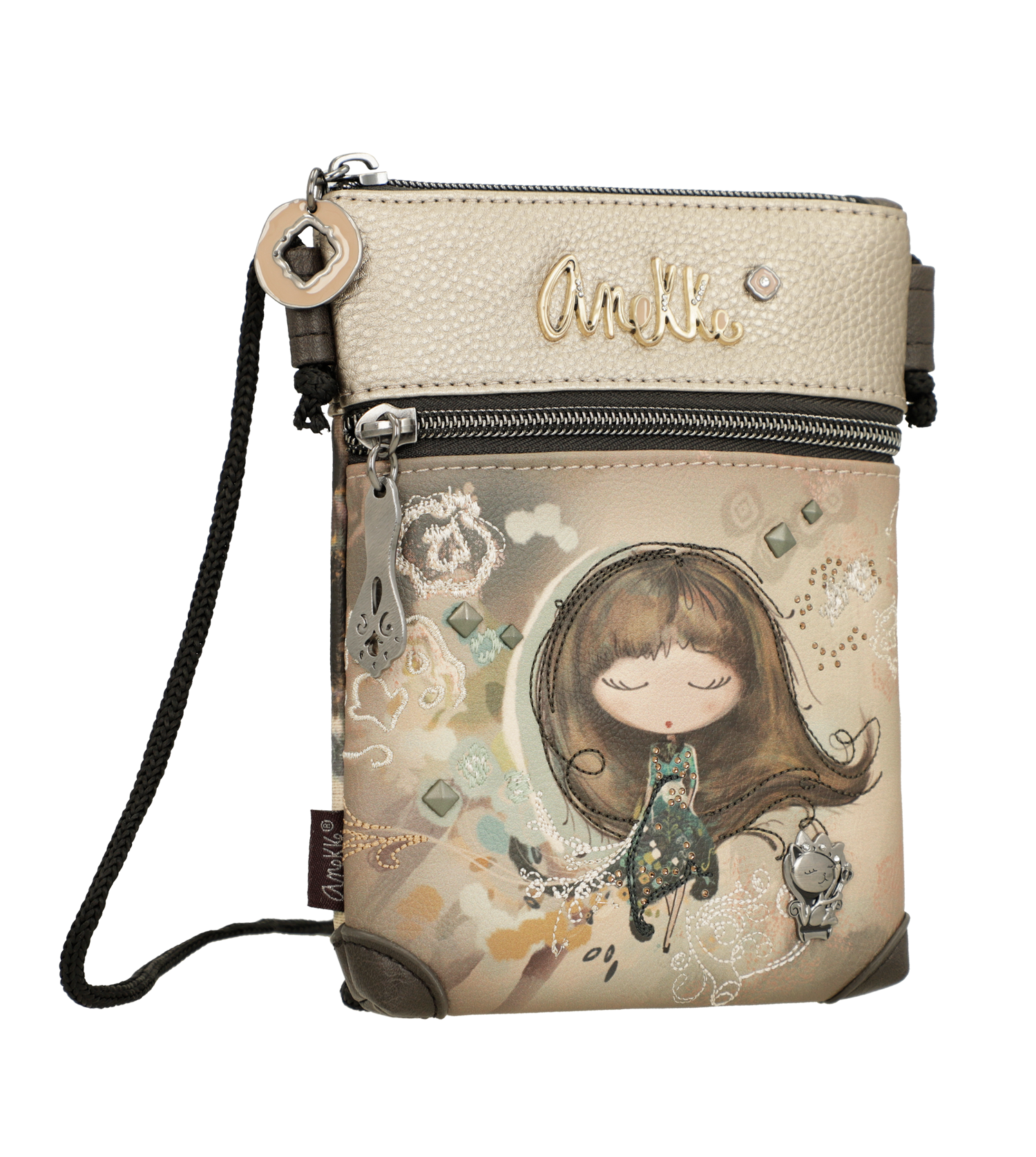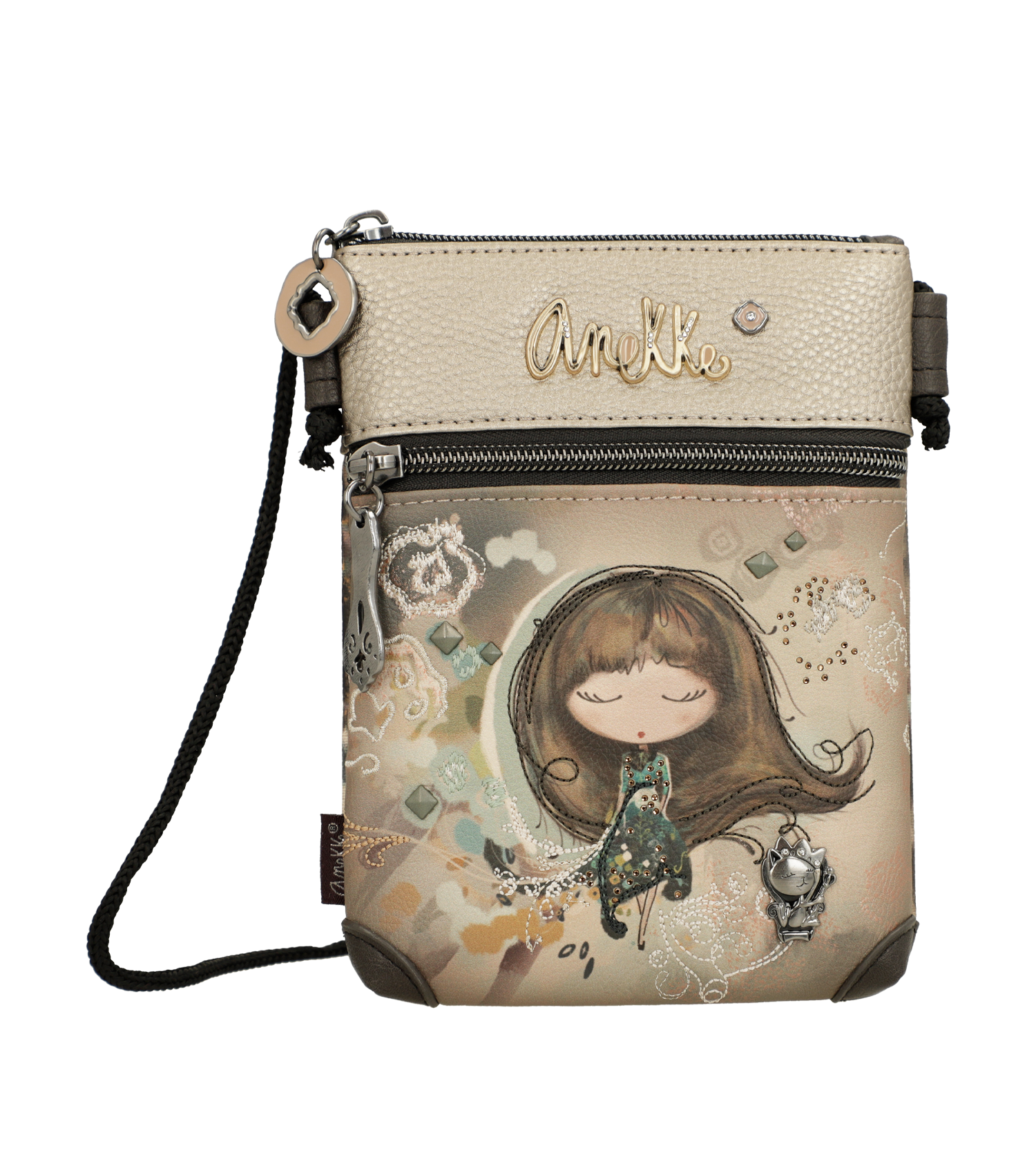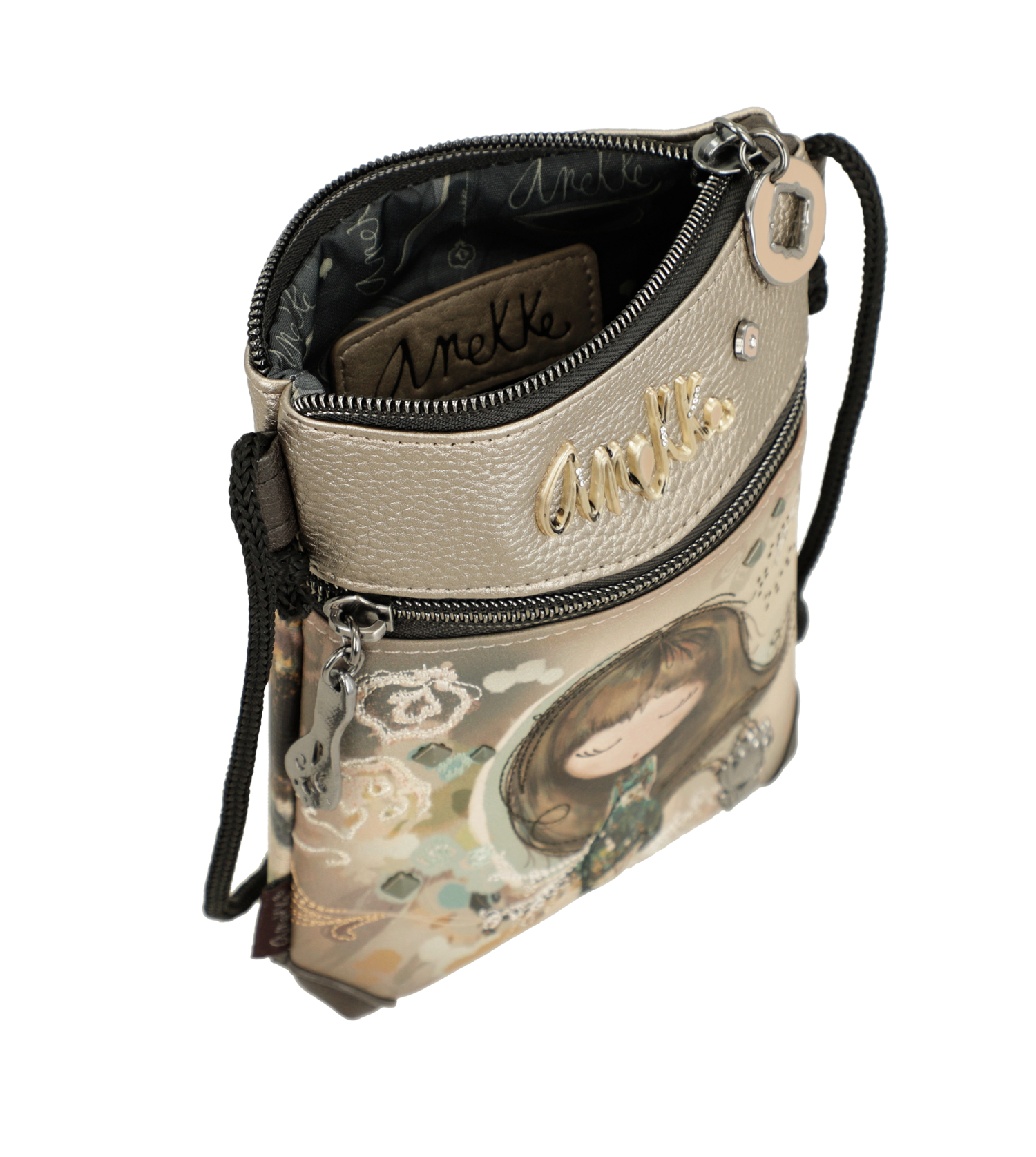 Mini bandolera Real de Anekke. Deja que tus sueños sean tus alas, convierte la ilusión en tu motor y hazlo real. Todo lo que necesitas está en ti. Este bolso bandolera pequeño con cierre cremallera en su parte superior, cuenta con otro bolso cremallera en su parte delantera.