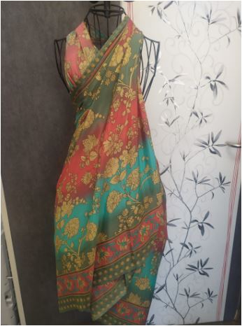 Pareo estampado de Tantrend. Este pareo de tejido muy fino y un gran colorido, es ideal para un baño en la piscina o en la playa.