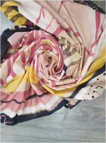 Toalla pareo de playa estampado. Este modelo combina tejido fino para emplear como sábana de playa y poder tumbarte o sentarte sobre ella, y el lado contrario es de toalla de microfibra, perfecta para secarte si te das un baño en el mar o la piscina. Su original diseño presenta un estampado colorido en tonos muy suaves.